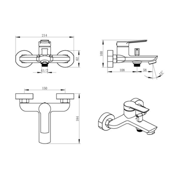 For bathroom: suitable for installation on a bathtub | for connection to a water heater or the central hot water supply | easy surface mounting on the wall | quick and effortless installation thanks to standardised installation points